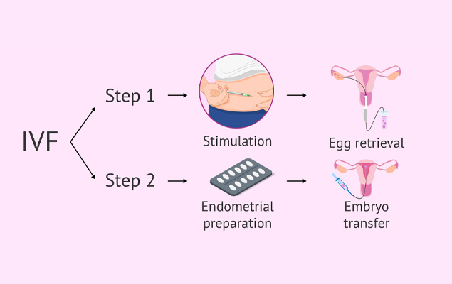 A healthy embryo is placed in the uterus, followed by a pregnancy test after 12–14 days.